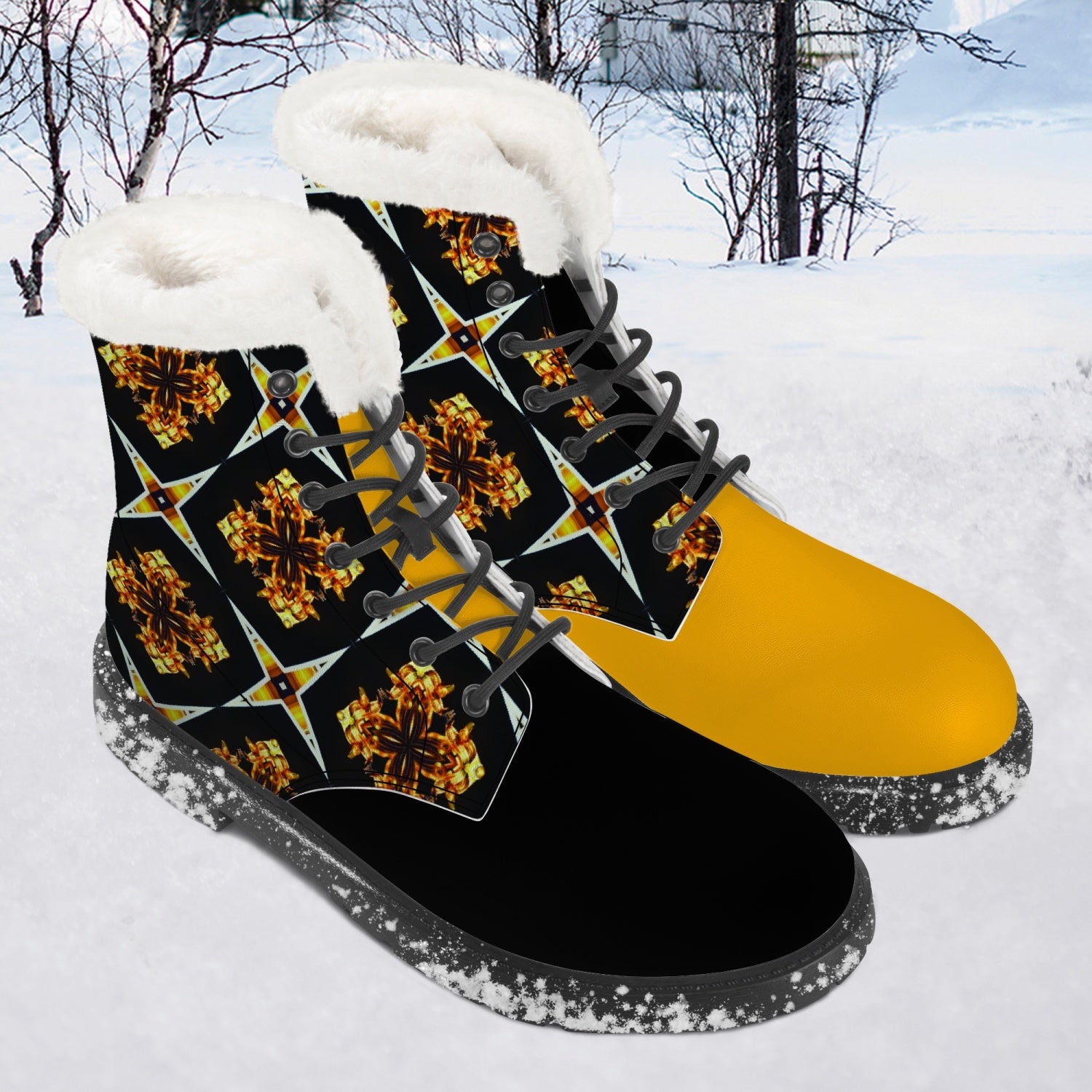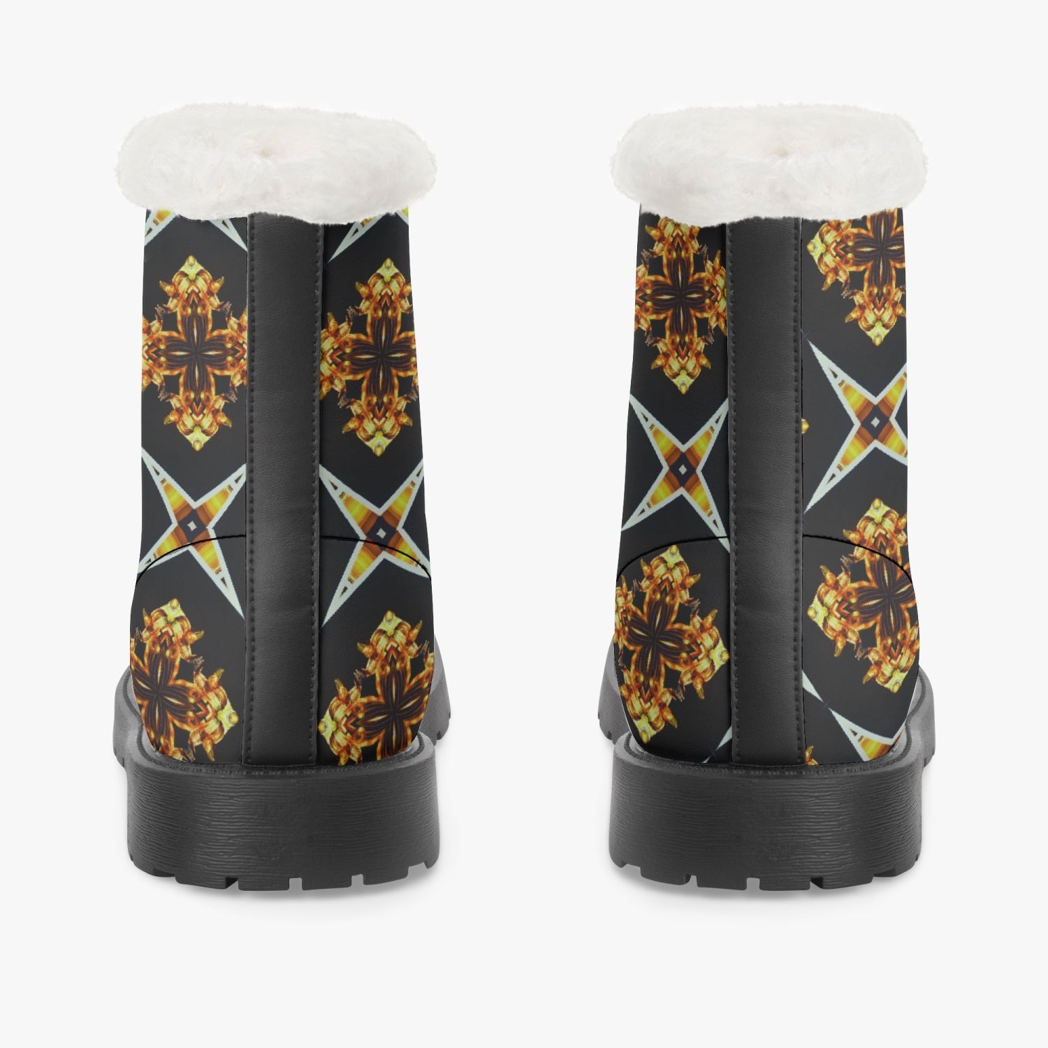 ✅ Vegan-friendly leather fabric with warm faux fur inner, keep long-time warmth in Winter.