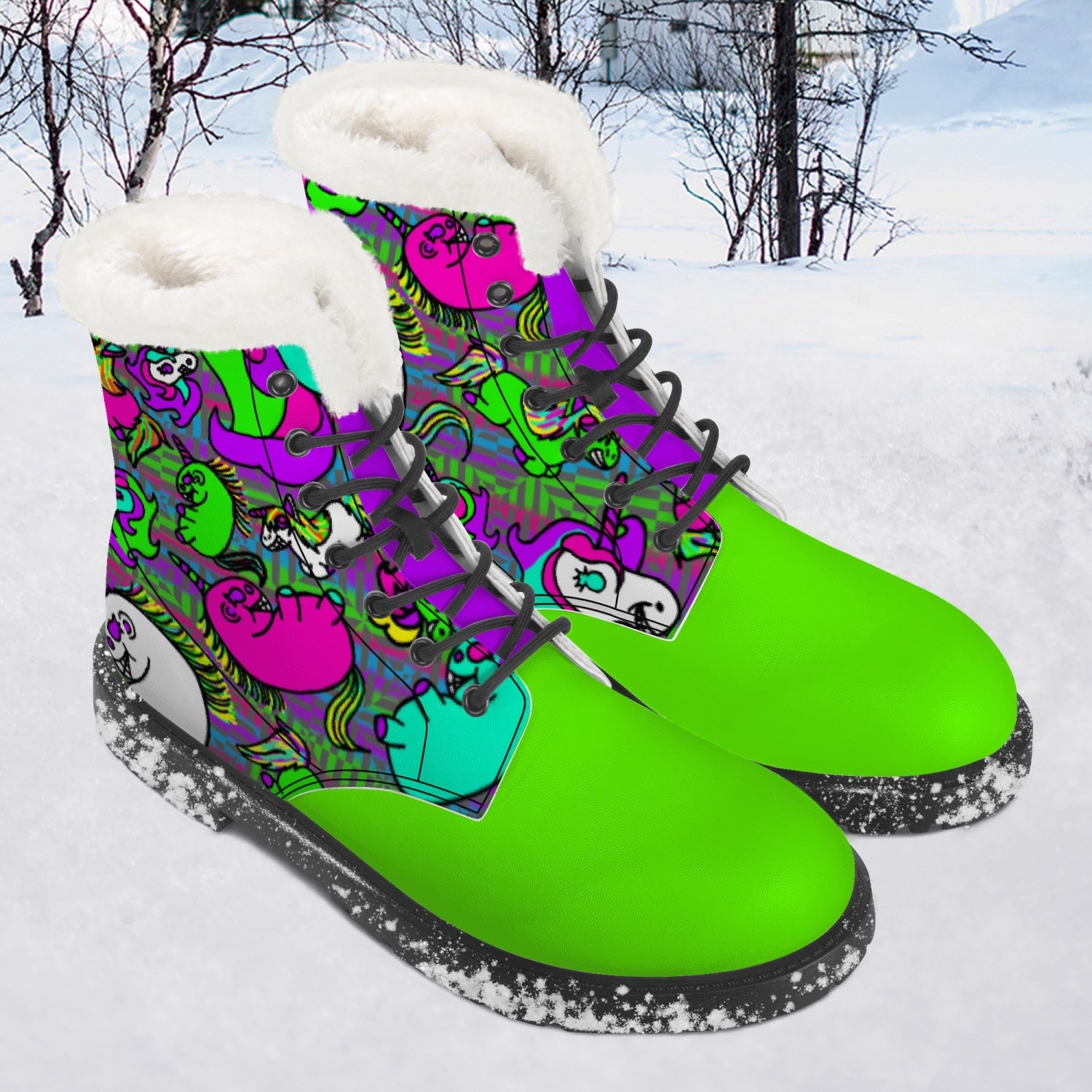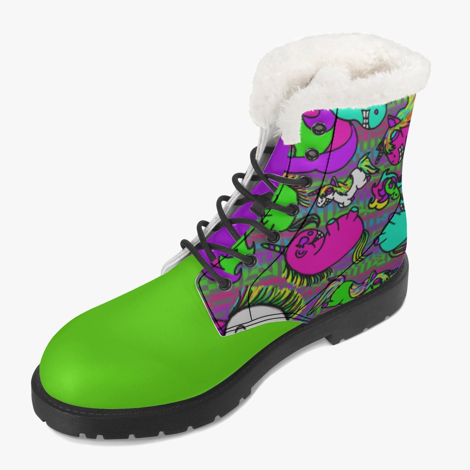 ✅ Vegan-friendly leather fabric with warm faux fur inner, keep long-time warmth in Winter.
